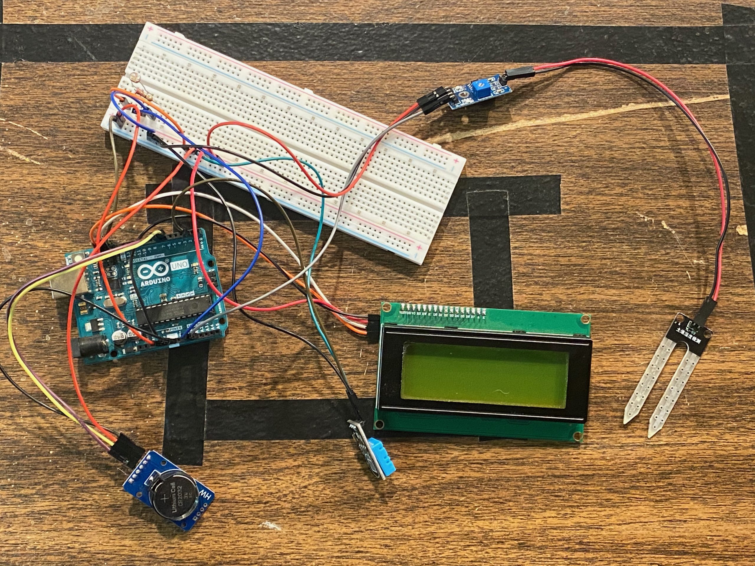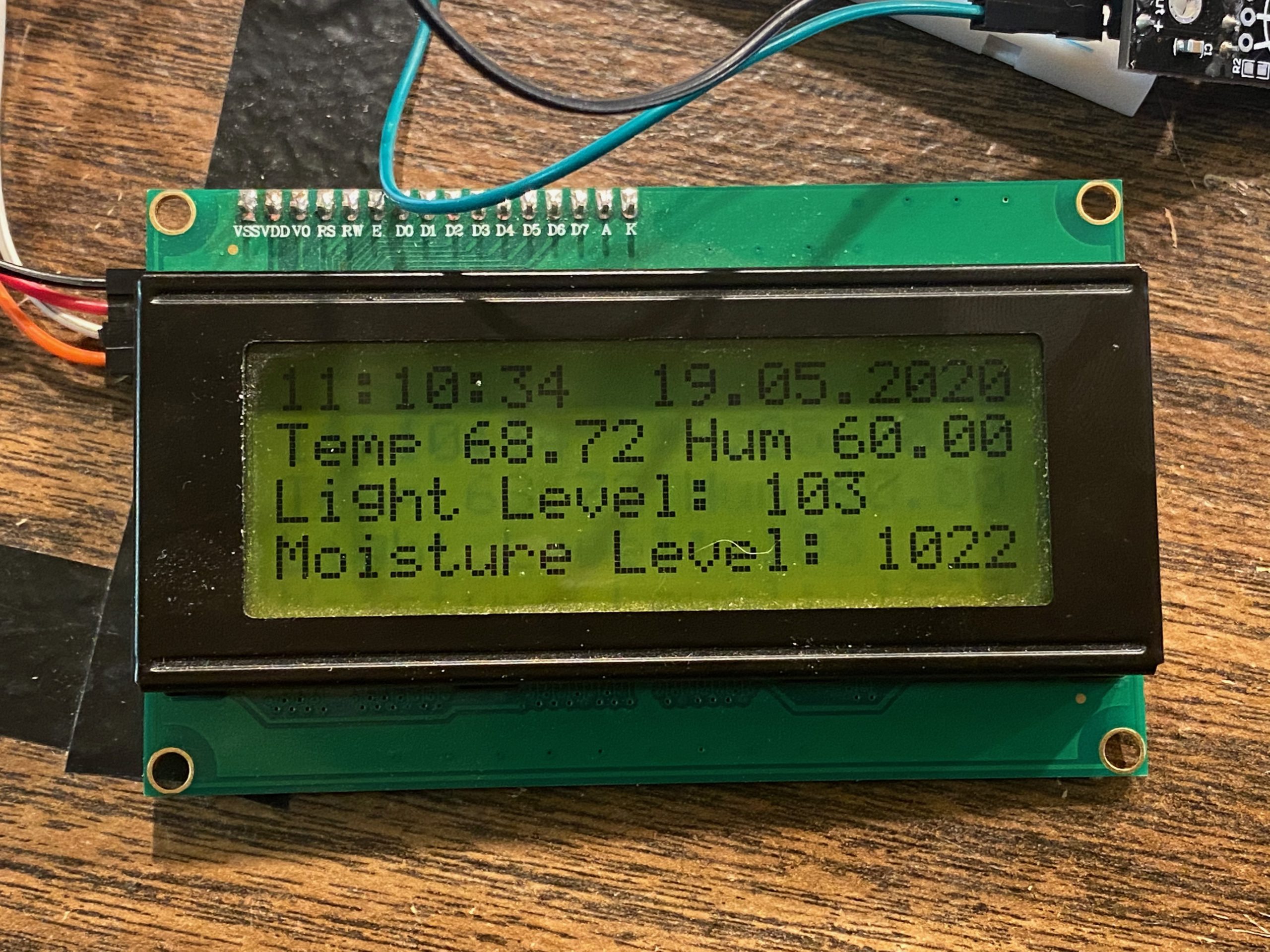 This project is a full sensor suite device for a garden or your indoor plants. This has a Moisture Sensor, Temperature/ Humidity Sensor, Light Sensor and Real Time Clock that output to a 20×4 LCD I2C screen.